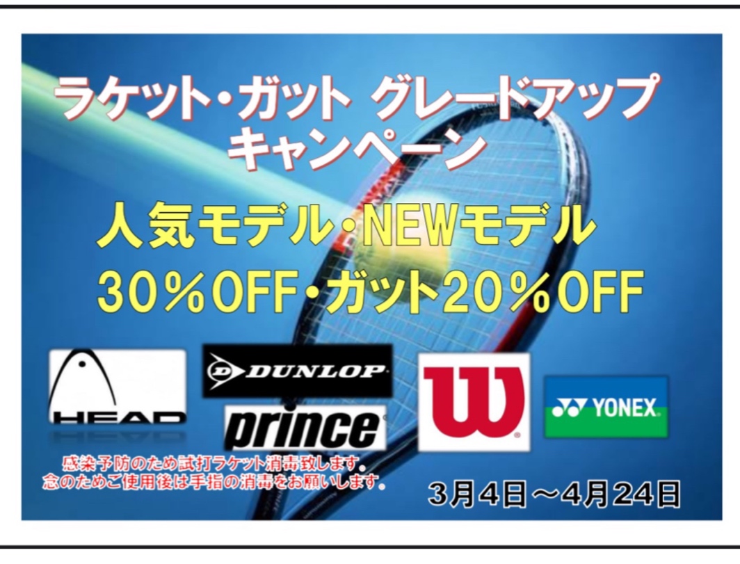 3月4日からラケット・ガットキャンペーンが始まります!