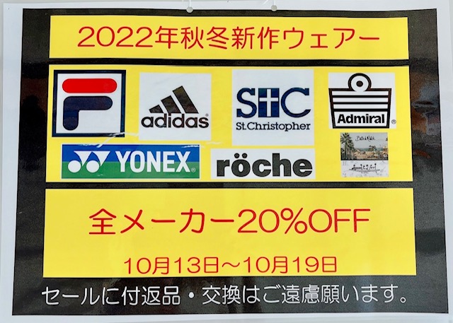 2022年秋冬新作ウェアーSALE 開催中です。