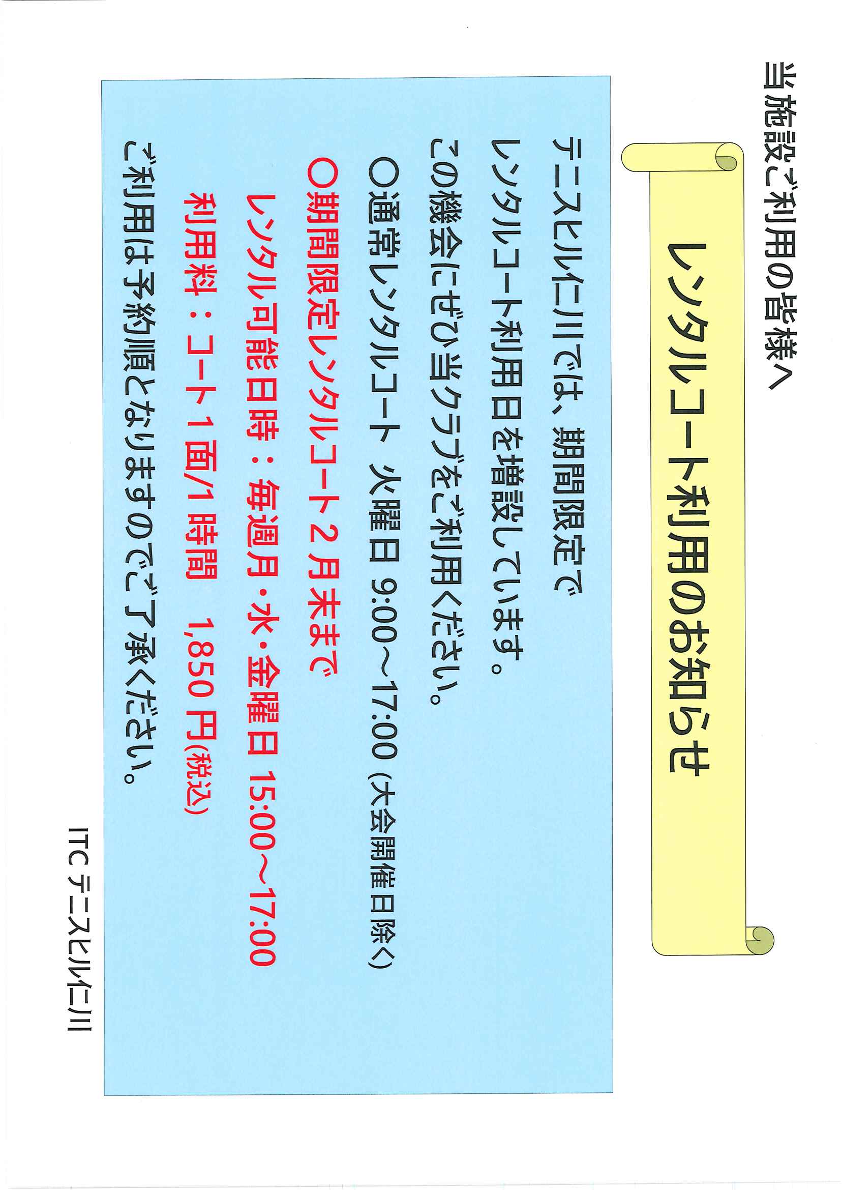 期間限定でのレンタルコート利用のお知らせです
