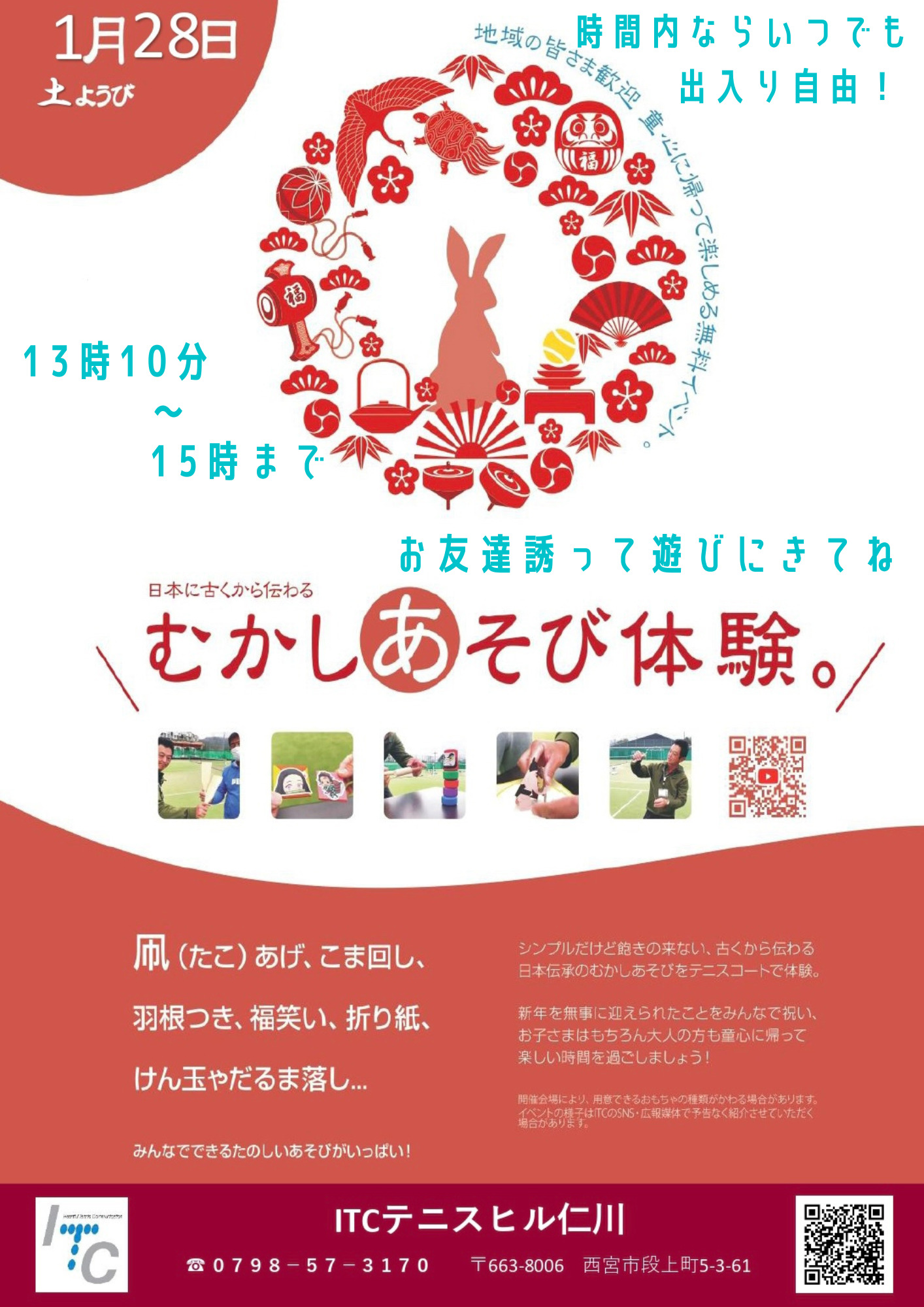 1/28(土)13:10-15:00まで昔遊び体験イベント開催します