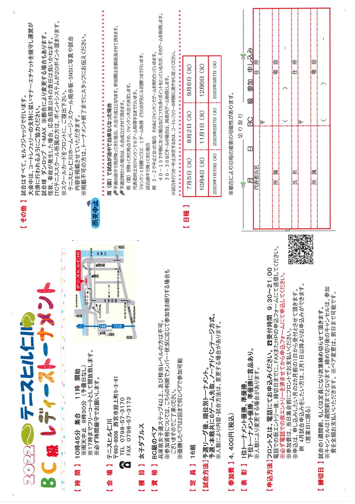2022年9月から2023年3月までの試合要項です