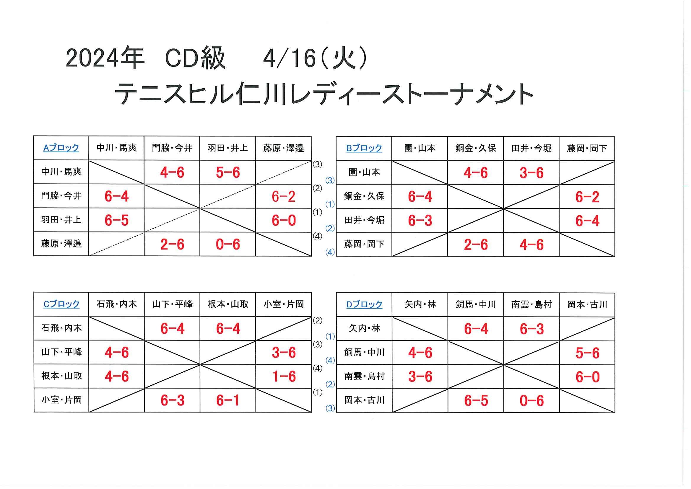 CD級レディーストーナメントを行いました。