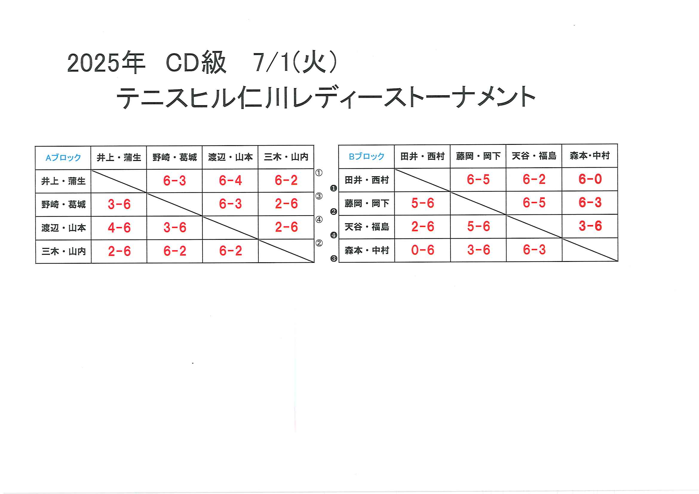 本日、CD級レディーストーナメントを行いました。