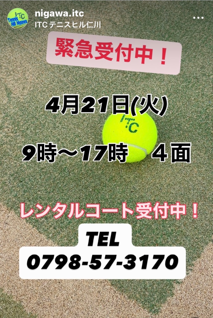 4/21(火)レンタルコート緊急受付!! (04/14)