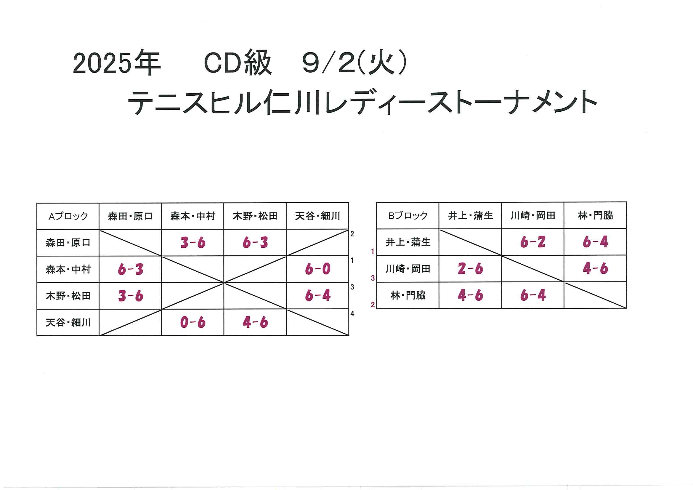 本日、CD級レディーストーナメントを行いました。