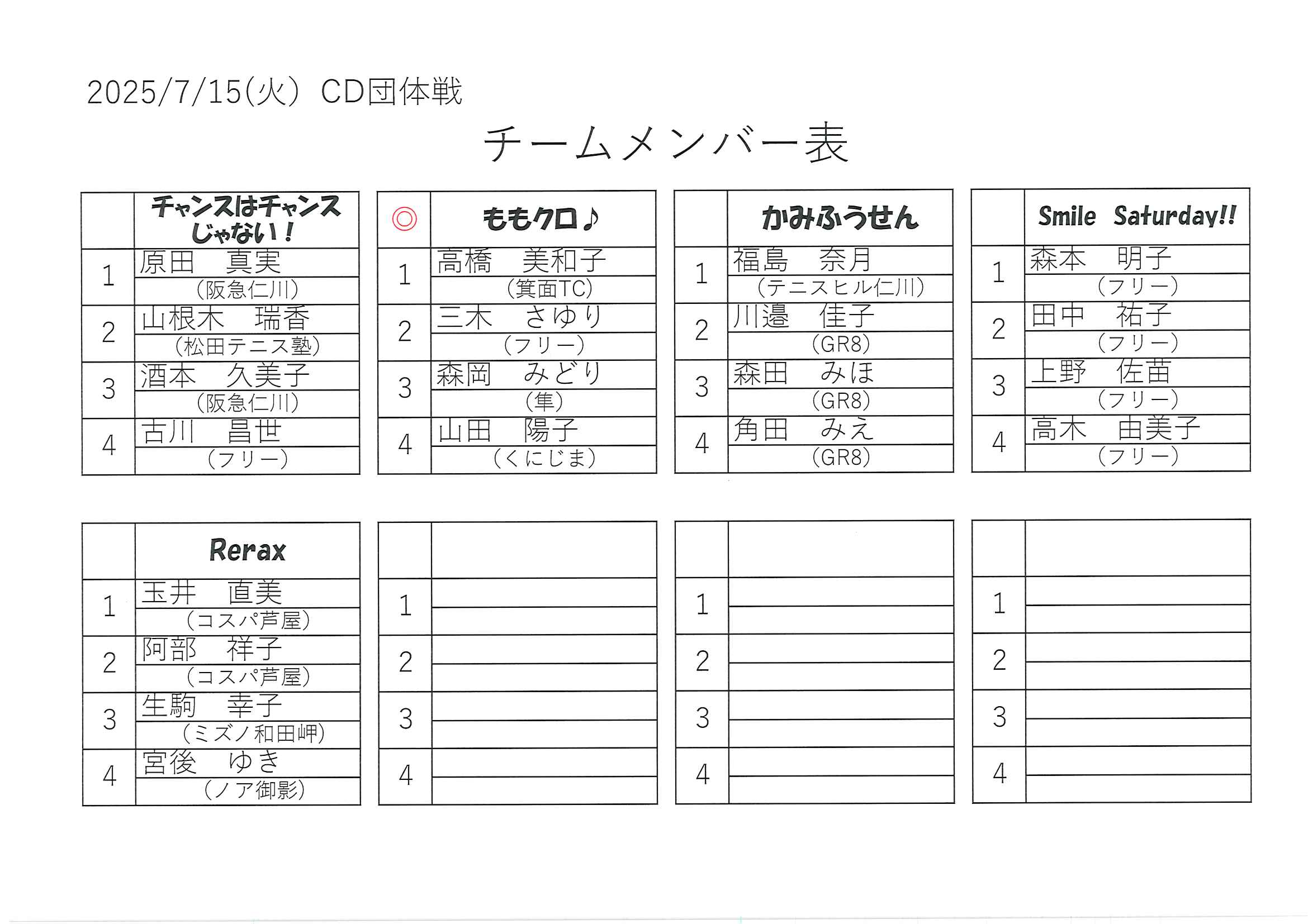 【チャンスはチャンスじゃない!】 原田真実(阪急仁川)・山根木瑞香(松田テニス塾)・酒本久美子(阪急仁川)・古川昌世(フリー) チーム