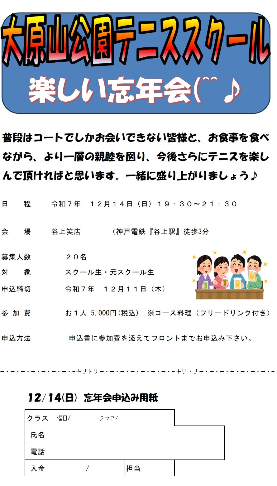 「楽しい忘年会」申し込み締め切り日時変更のお知らせ