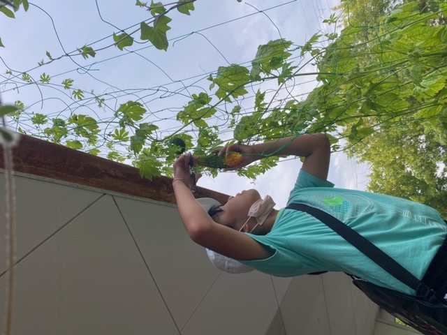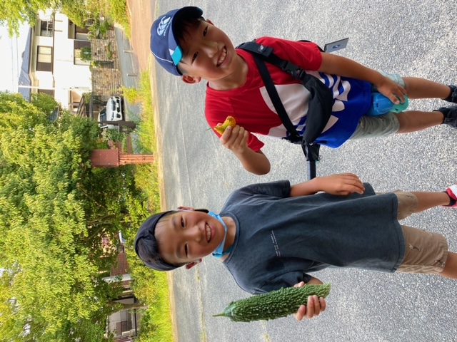 今回はゴーヤの収穫の模様と、きれい咲いたアサガオのご紹介です