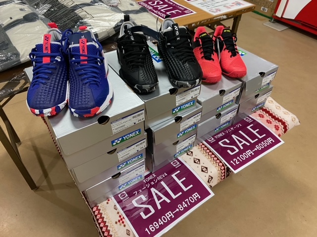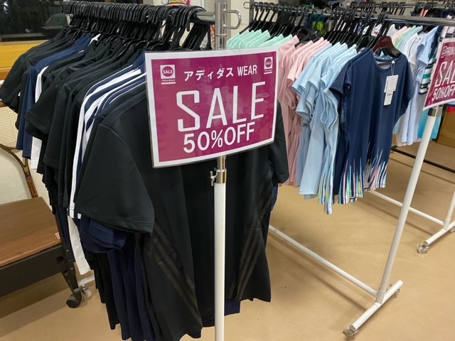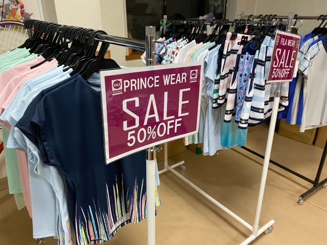 アディダス、FILA、PRINCEのウェアー、ヨネックスシューズが50%オフなどお買い得商品を用意しています