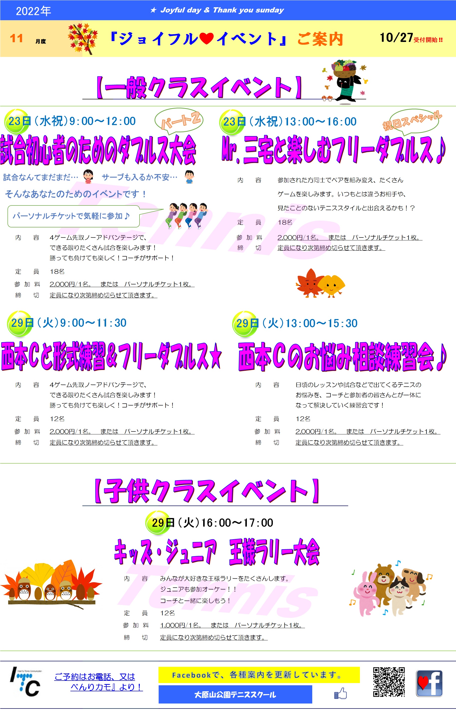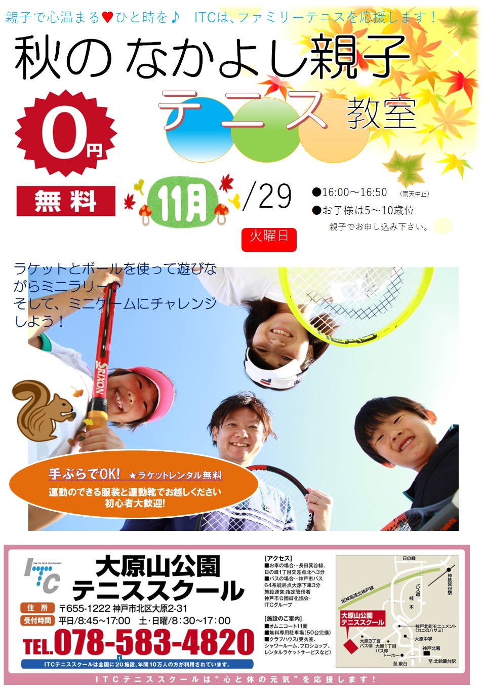 今年の秋も、外部の方向けのイベント「親子テニス体験」を企画しております!