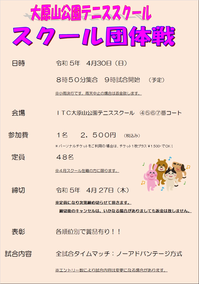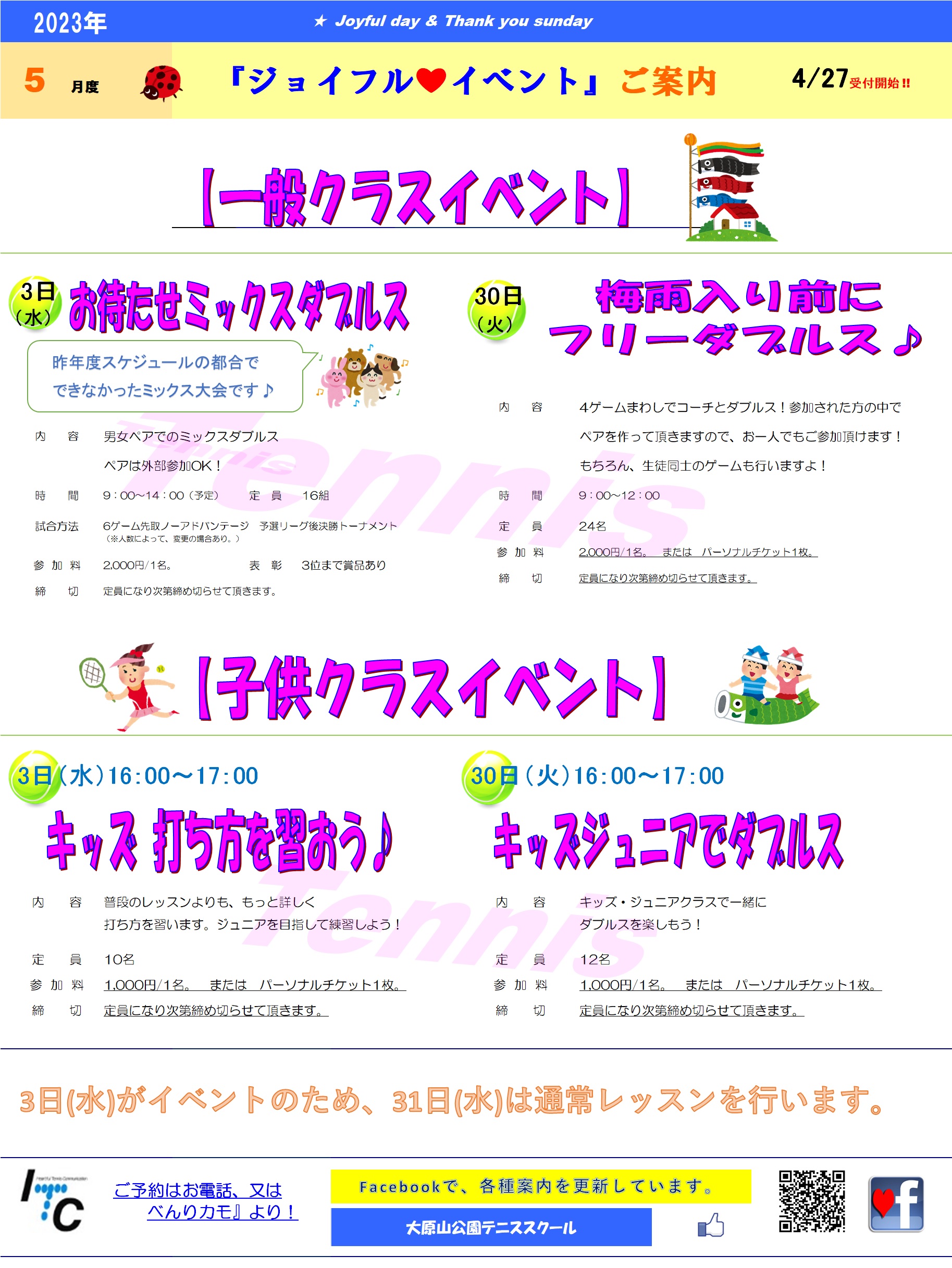 4月29日(土)がスクール開校25周年記念イベント、30日(日)がスクール団体戦
