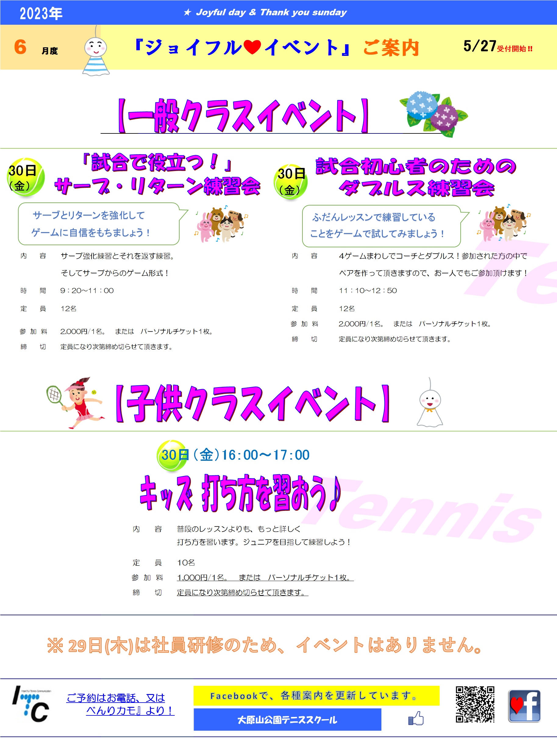 ※6/29(木)は社員研修のため、スクールはお休みです。