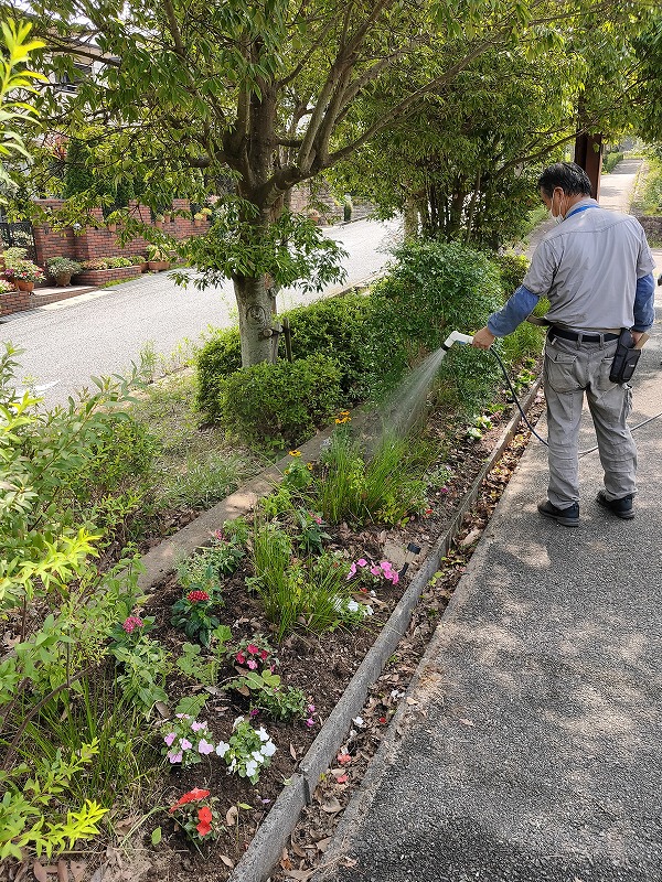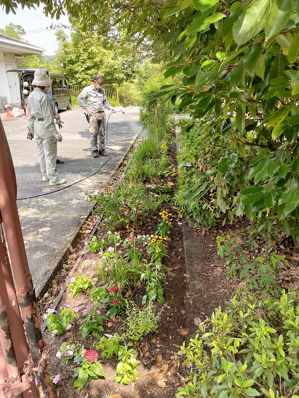 毎年開催しております花植えイベントが、コロナウィルス感染拡大の影響で行えませんでしたので、緑化協会の方が花壇をきれいにして下さいました。