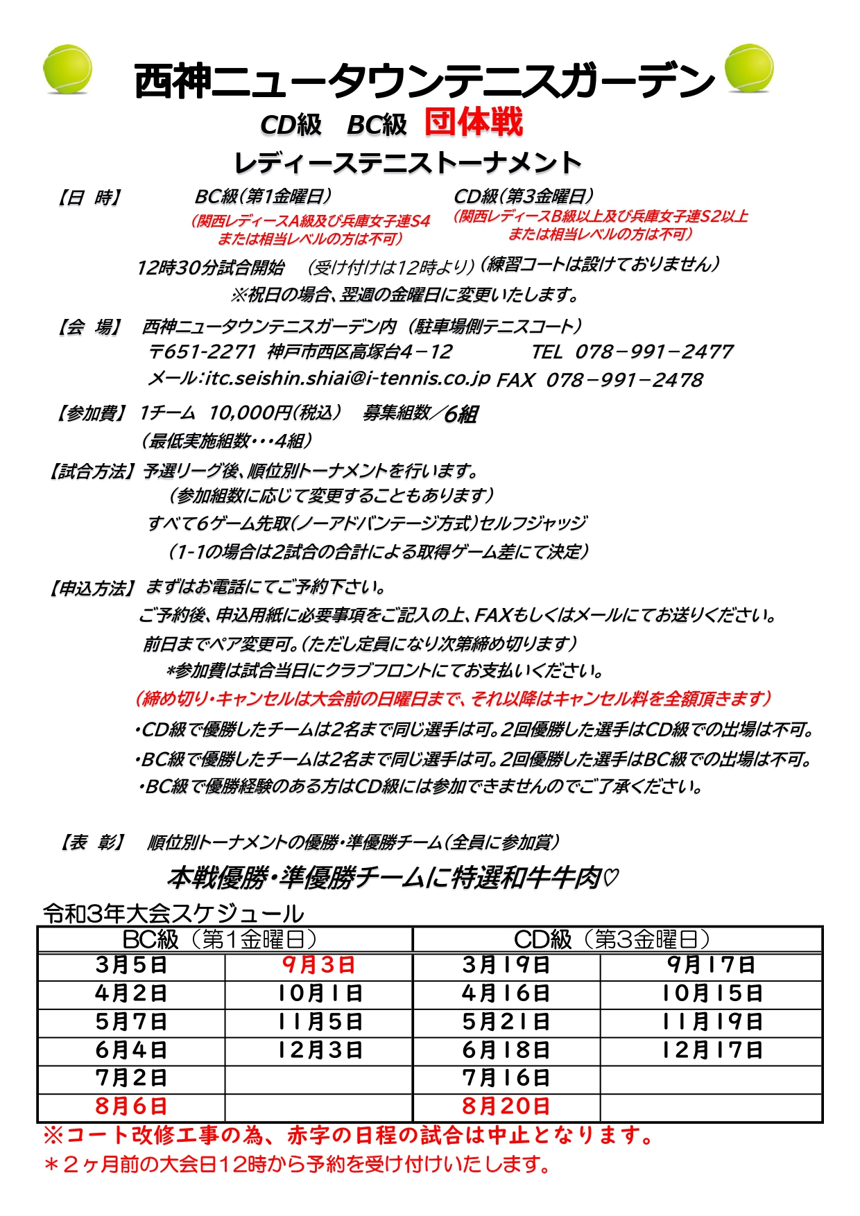 平素は、西神テニスガーデンレディーストーナメントにご参加いただき、誠にありがとうございます。