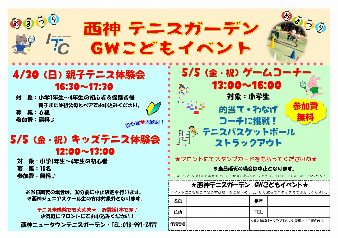 西神テニスガーデンGWこどもイベントのご案内です