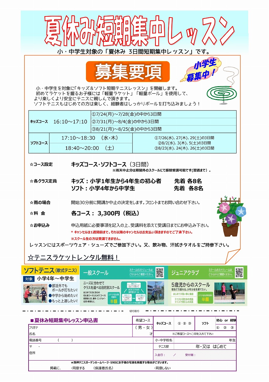 小・中学生を対象に夏休み短期集中レッスン開催します!
