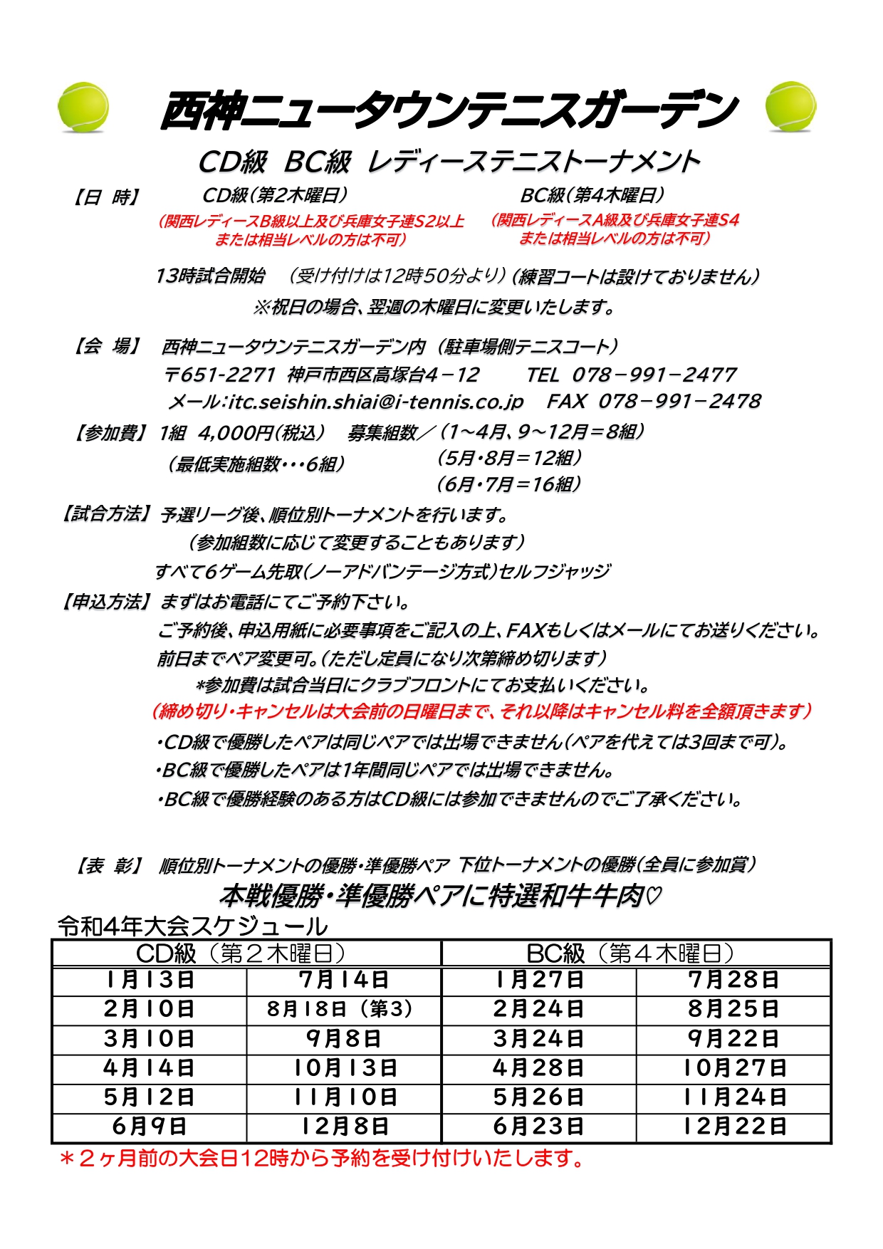令和4年 西神ニュータウンテニスガーデン個人戦、団体戦のお知らせです。