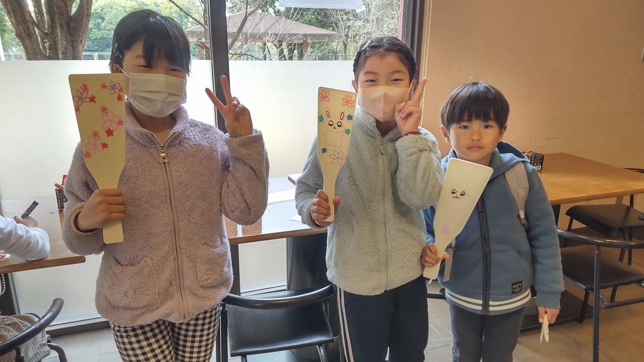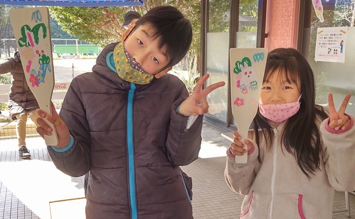 当日は羽子板、けん玉、コマは先着順でお好きなものをプレゼント