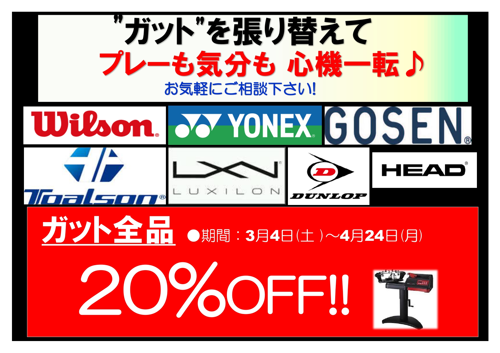 ガットが全品20%OFF!