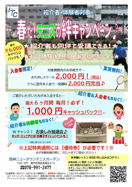 西神テニスガーデンでは絆キャンペーンを開催しています🎶
