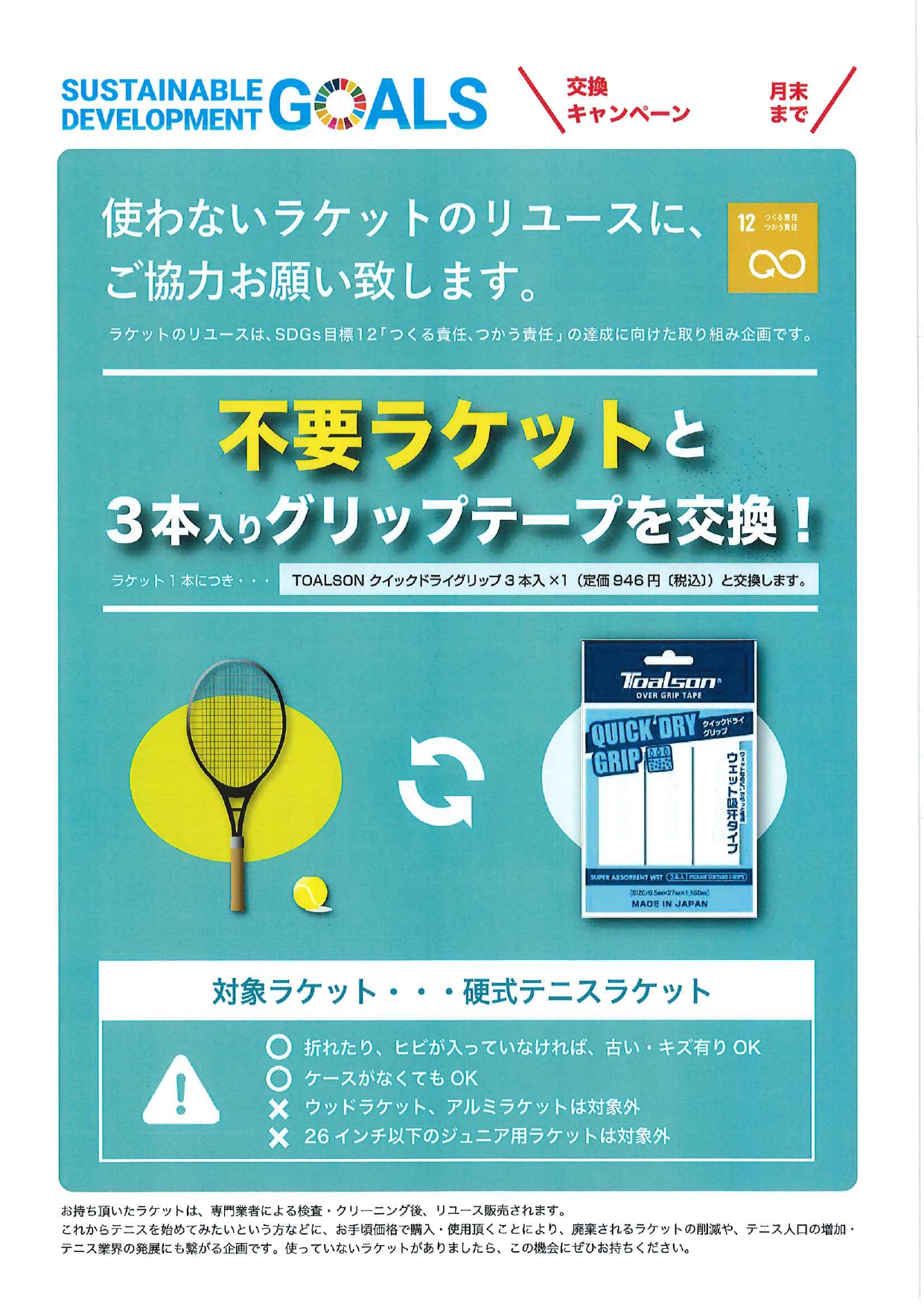 西神テニスガーデンではTOALSONの取り組みで不要ラケットの回収をしています。