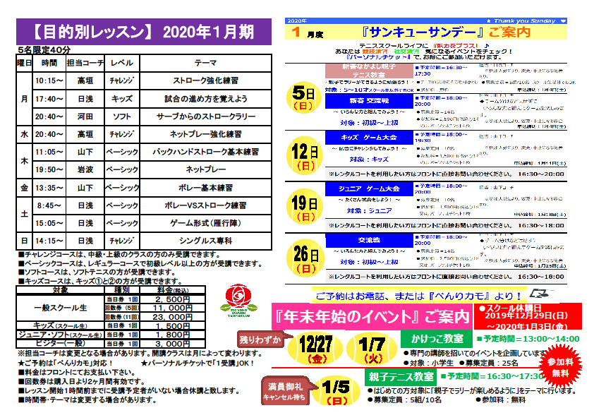 3月期スクール案内です