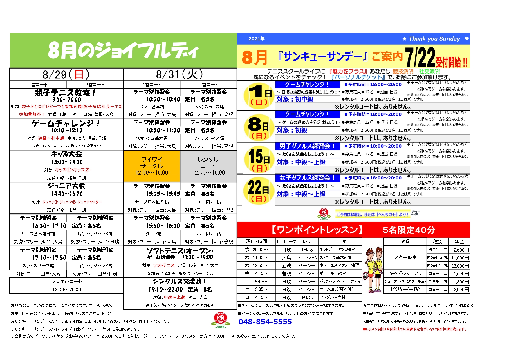 テニスと一緒に夏を楽しく乗り越えましょう!!